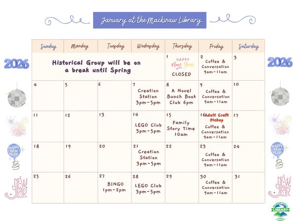 Stop by the library on the third Friday of every month to pick up a take-home craft. January's craft will be doily snowflakes/stars.