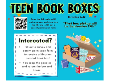 ***MAKE SURE TO STOP INTO THE LIBRARY FOR A PARENT PERMISSION FORM TO RECEIEVE A BOOK BOX!***