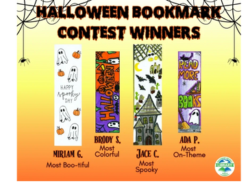 Pictured above are the winners for the Halloween bookmark decorating contest! Make sure to stop by the library in the month of October to take one of their bookmarks home.